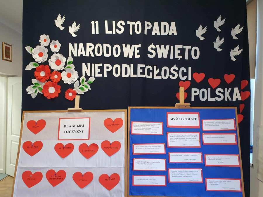 11 listopada obchodzimy Narodowe Święto Niepodległości. W tym dniu świętujemy rocznicę odzyskania przez Polskę niepodległości. Po 123 latach zaborów nasz kraj stał się wolnym i niezależnym państwem. Chociaż Polski nie było na mapie, pozostała jednak w sercach Polaków, ich mowie i kulturze. Tęsknota za Ojczyzną nie pozwoliła im zapomnieć o wolnym kraju. Podejmowali kolejne próby odzyskania niepodległości. Dzięki ich ofiarnej i heroicznej walce Polska nie zginęła. Pokoleniom naszych przodków zawdzięczamy, że dziś możemy cieszyć się wolnością.
