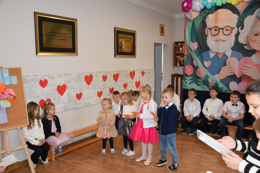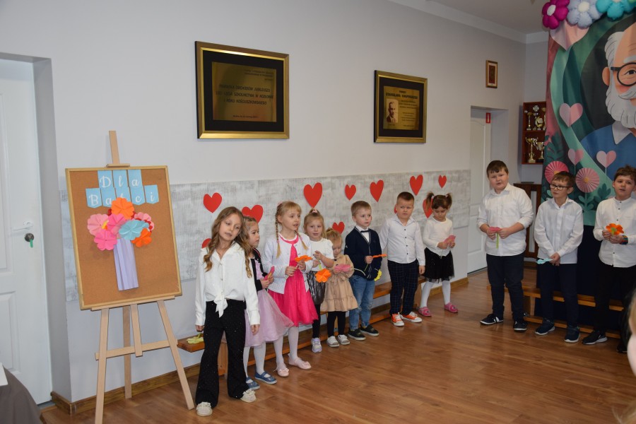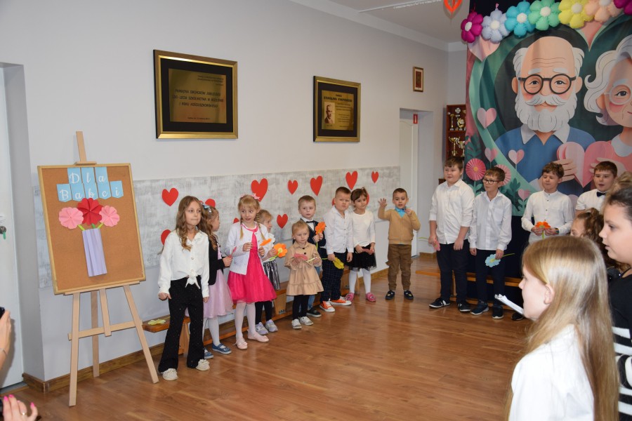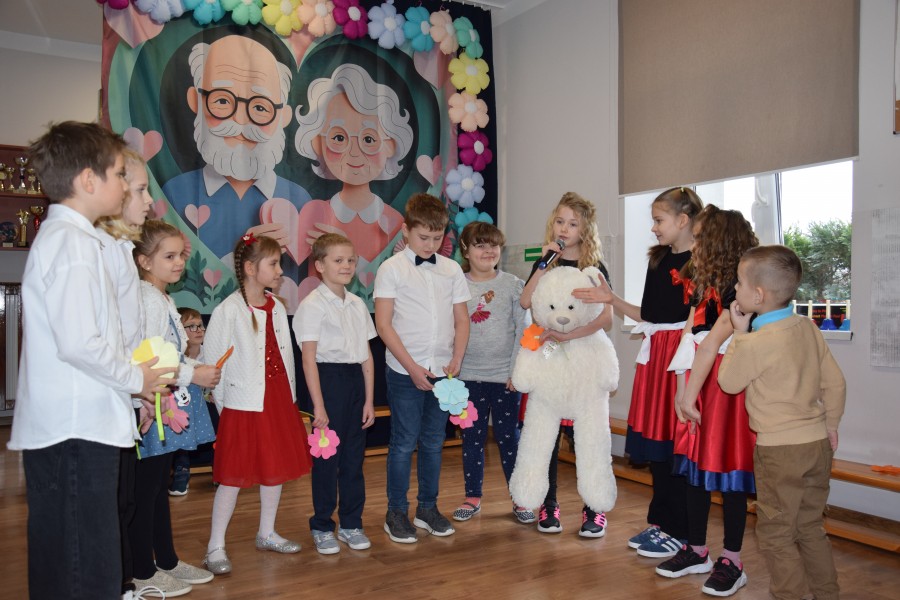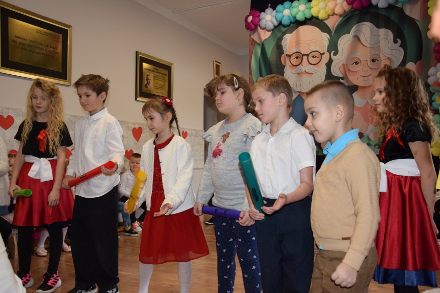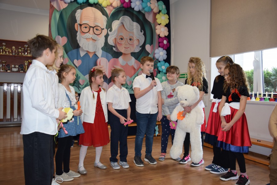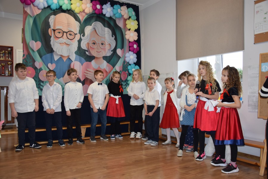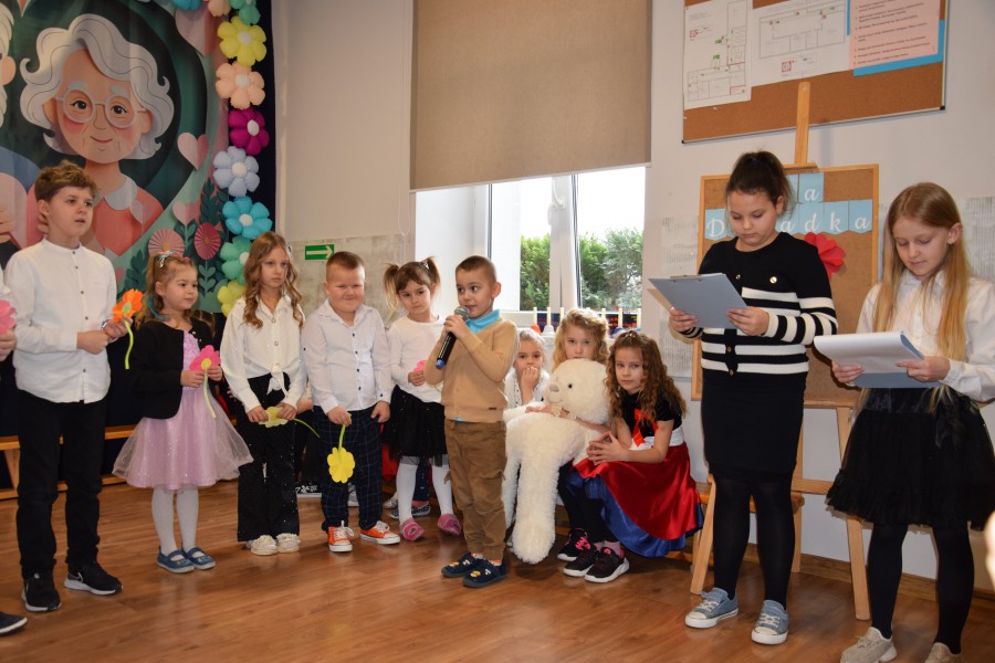 Dziś w naszej szkole odbyła się wyjątkowa uroczystość z okazji Dnia Babci i Dziadka. Spotkanie rozpoczęło się od słodkiego poczęstunku, podczas którego zaproszeni goście wysłuchali prelekcji funkcjonariuszek Komendy Wojewódzkiej Policji zs. w Radomiu. Panie policjantki przypomniały seniorom najważniejsze zasady bezpieczeństwa oraz ostrzegały przed popularnymi metodami oszustw, m.in. „na wnuczka”. Następnie druhowie z Ochotniczej Straży Pożarnej w Jastrzębi przeprowadzili pokaz i instruktaż udzielania pierwszej pomocy, w tym zasad resuscytacji krążeniowo-oddechowej. Była to bardzo cenna i praktyczna część spotkania. Do zgromadzonych zwrócił się Pan Wójt Wojciech Ćwierz, składając Babciom i Dziadkom serdeczne życzenia. Głos zabrała również Pani Dyrektor Małgorzata Zych, która złożyła seniorom życzenia oraz pogratulowała im wspaniałych wnucząt. Następnie przemówił Dyrektor Wojewódzkiego Ośrodka Ruchu Drogowego w Radomiu Pan Dariusz Piątek, który przekazał życzenia oraz upominki dla seniorów, a także odblaskowe zestawy dla uczniów, promujące bezpieczeństwo na drodze. Kolejnym punktem uroczystości był występ artystyczny dzieci z oddziału przedszkolnego oraz uczniów klas 1–3. Dzieci zaprezentowały wiersze, piosenki i tańce, a także przygotowały muzyczne zagadki dla swoich gości. Na zakończenie wszyscy wspólnie zaśpiewali „Sto lat”, po czym uczniowie wręczyli Babciom i Dziadkom własnoręcznie wykonane laurki. W czasie poczęstunku i rozmów seniorów z przedstawicielami gminy, WORD oraz straży pożarnej, uczniowie — pod kierunkiem policjantek — tworzyli papierowe serca dla swoich bliskich. Zostały one wręczone jako symbol życzeń szczęśliwej i bezpiecznej drogi do domu. To było ciepłe, radosne i pełne wzruszeń spotkanie, które na długo pozostanie w naszej pamięci.