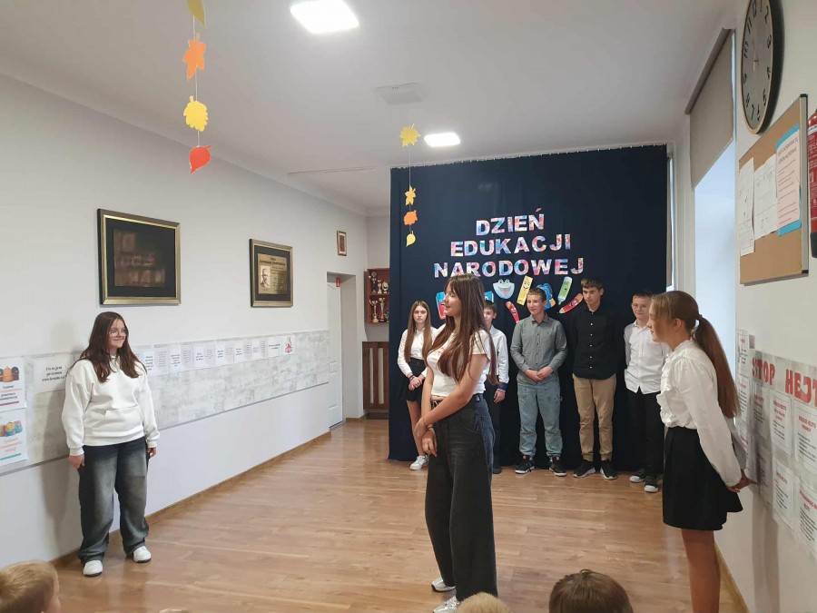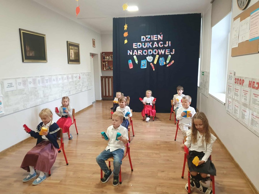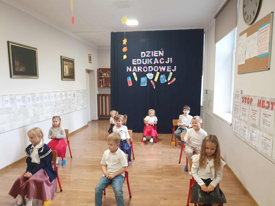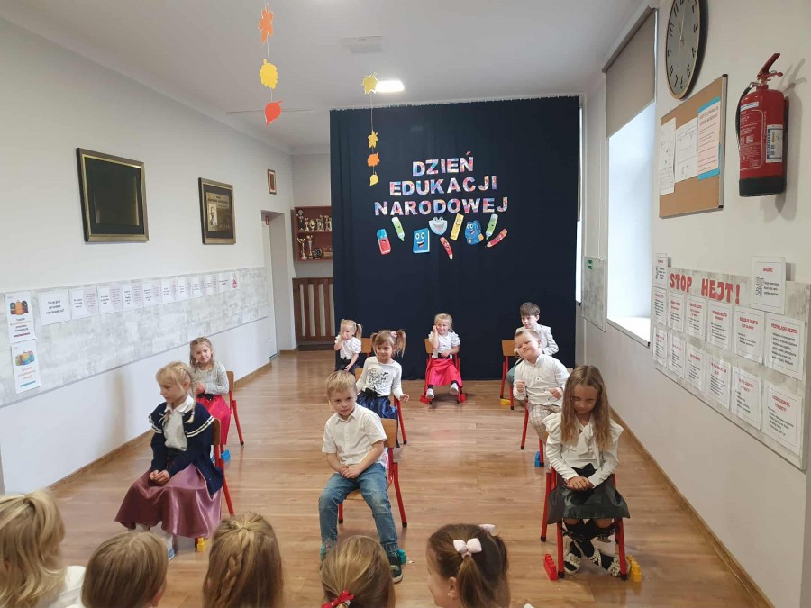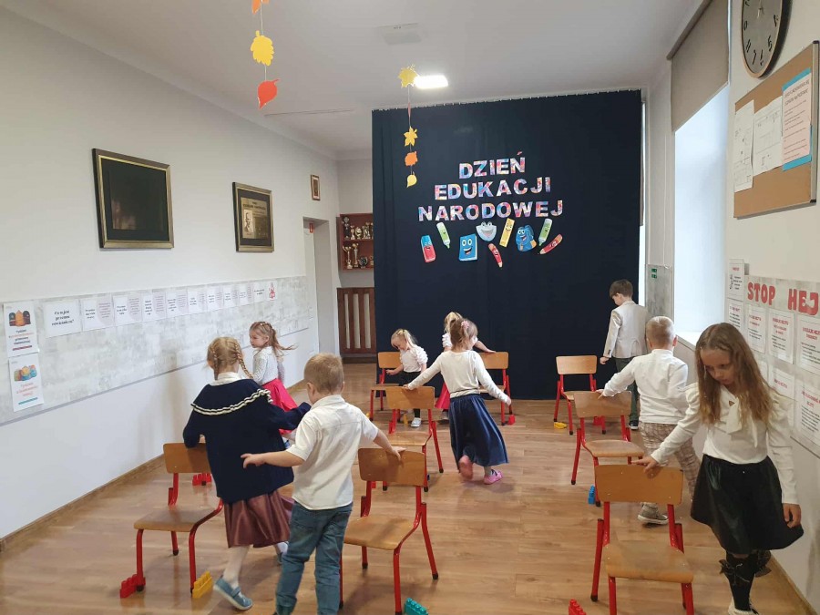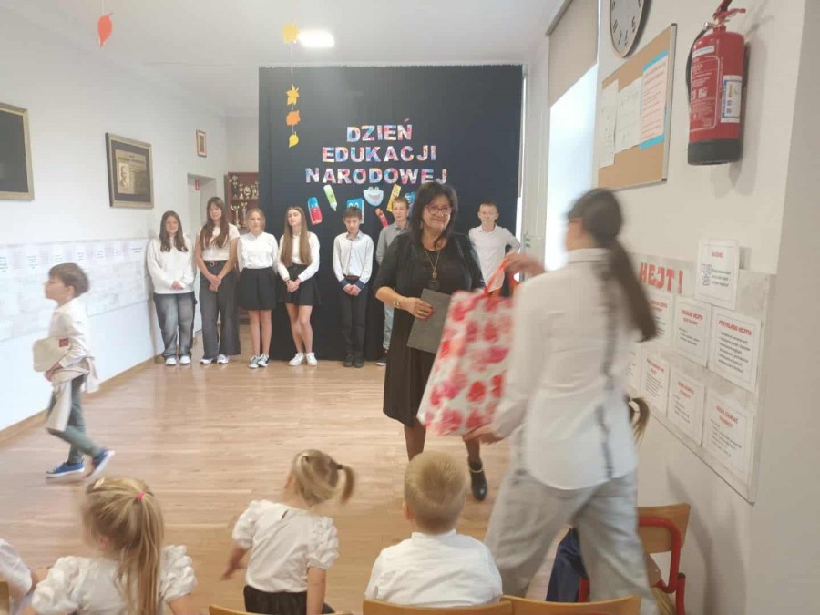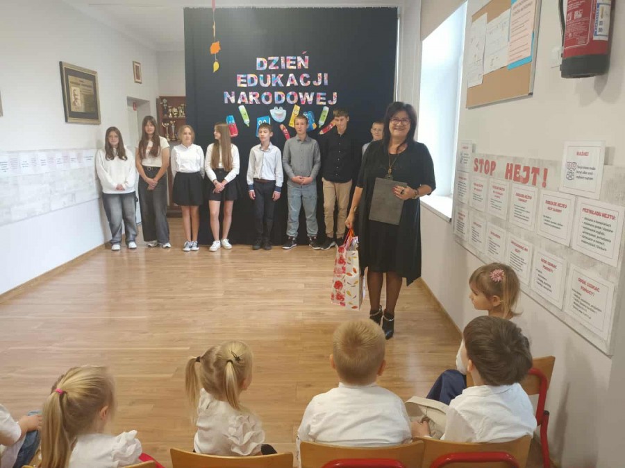 10 października w naszej szkole odbyły się uroczyste obchody Dnia Edukacji Narodowej. Dzieci z oddziału przedszkolnego przygotowały specjalnie na tę okazję występ muzyczny, natomiast uczniowie klasy siódmej zaprezentowali krótkie przedstawienie. Uroczystość przebiegła w miłej i podniosłej atmosferze. Na zakończenie wszyscy wspólnie odśpiewali „Sto lat”, składając nauczycielom serdeczne życzenia i podziękowania za ich trud oraz codzienną pracę.