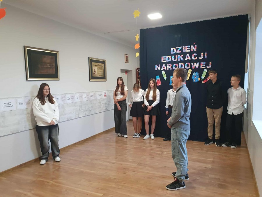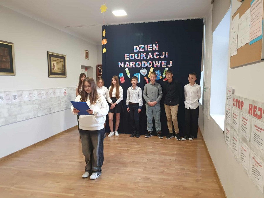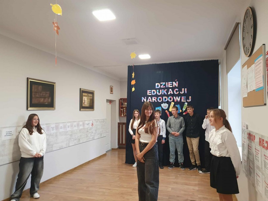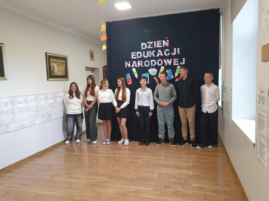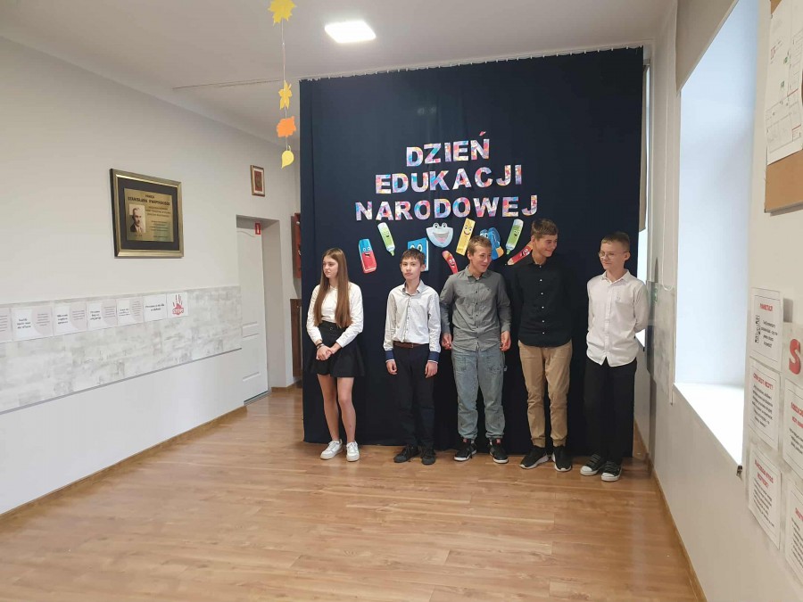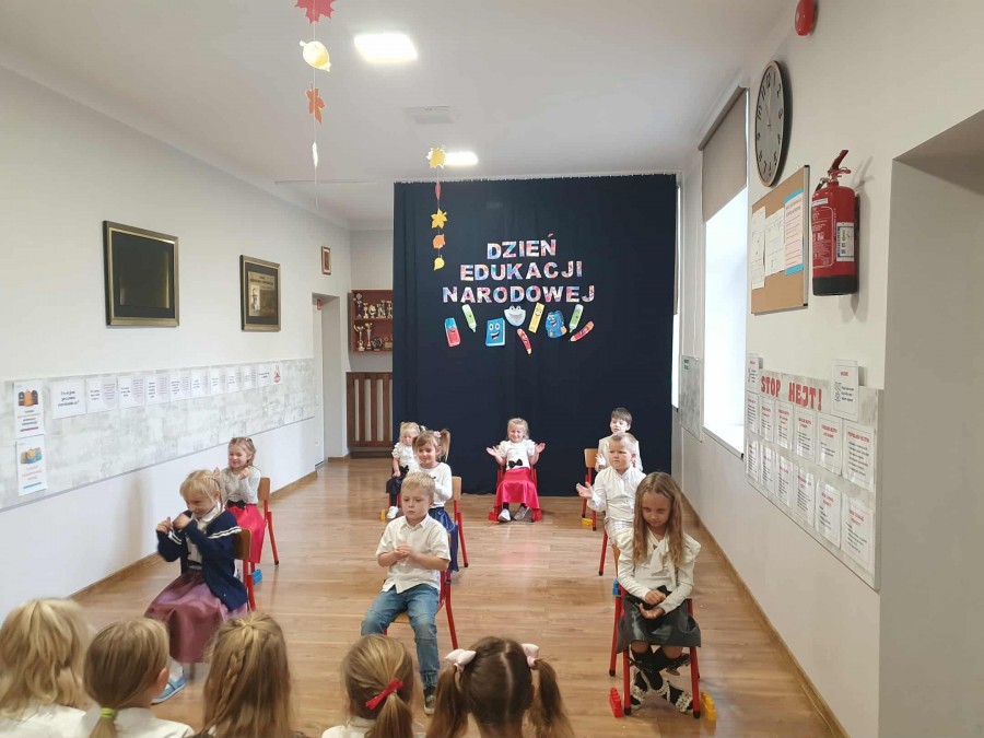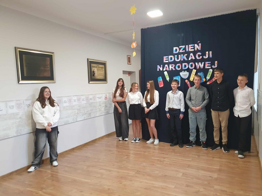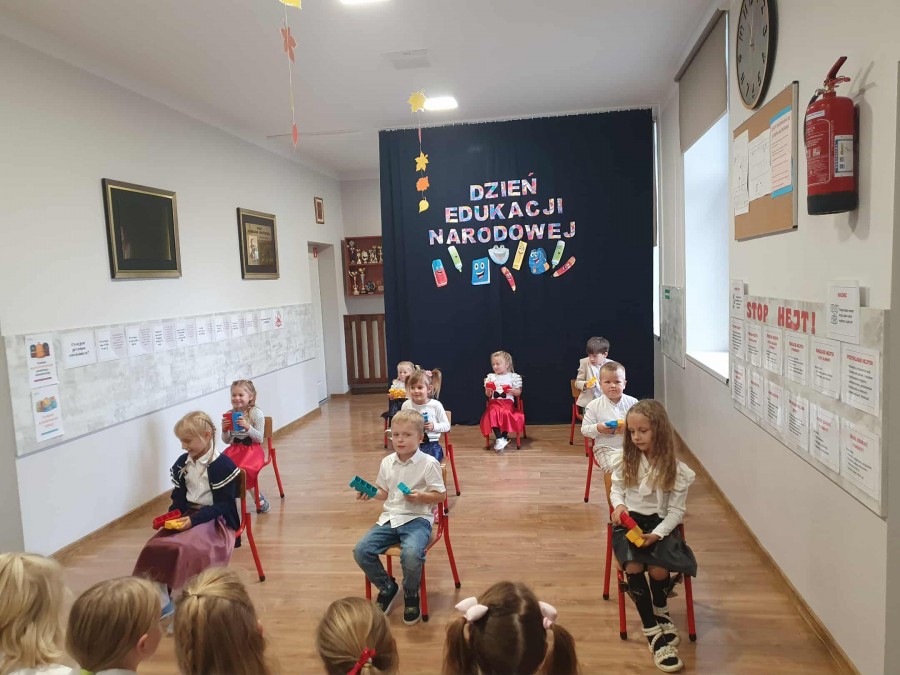 10 października w naszej szkole odbyły się uroczyste obchody Dnia Edukacji Narodowej. Dzieci z oddziału przedszkolnego przygotowały specjalnie na tę okazję występ muzyczny, natomiast uczniowie klasy siódmej zaprezentowali krótkie przedstawienie. Uroczystość przebiegła w miłej i podniosłej atmosferze. Na zakończenie wszyscy wspólnie odśpiewali „Sto lat”, składając nauczycielom serdeczne życzenia i podziękowania za ich trud oraz codzienną pracę.