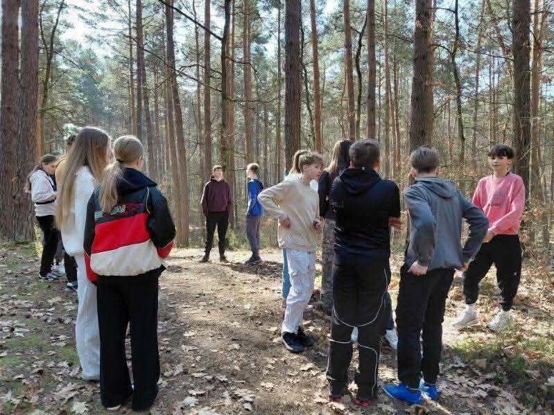 Uczniowie ćwiczyli orientację w terenie, obserwowali pierwsze oznaki wiosennego przebudzenia przyrody oraz mieli okazję poprawić swoją kondycję fizyczną przed zbliżającą się trzydniową wycieczką w Pieniny. Zajęcia były również dobrą okazją do integracji oraz praktycznego wykorzystania umiejętności zdobytych podczas lekcji.