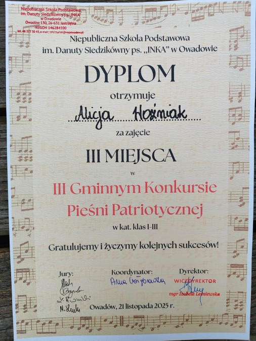 Niepublicznej Szkole Podstawowej im. Danuty Siedzikówny