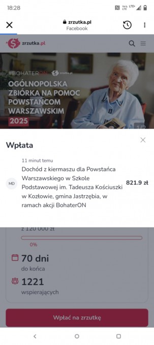 Dziś w naszej szkole odbył się Kiermasz dla Powstańca Warszawskiego zorganizowany przez p. Martę Dzięciołowską we współpracy ze społecznością szkolną. Kiermasz jest częścią ogólnopolskiego projektu BohaterON upamiętniającego walkę powstańców warszawskich. W tym roku szczególnie pamiętamy o walczących kobietach, sanitariuszkach, skupiamy się na ich historii. Rodzice i uczniowie przygotowali moc słodkości, zebrano 821,90zł a środki przeznaczone zostały na potrzeby fundacji zajmującej się opieką nad naszymi narodowymi bohaterami.