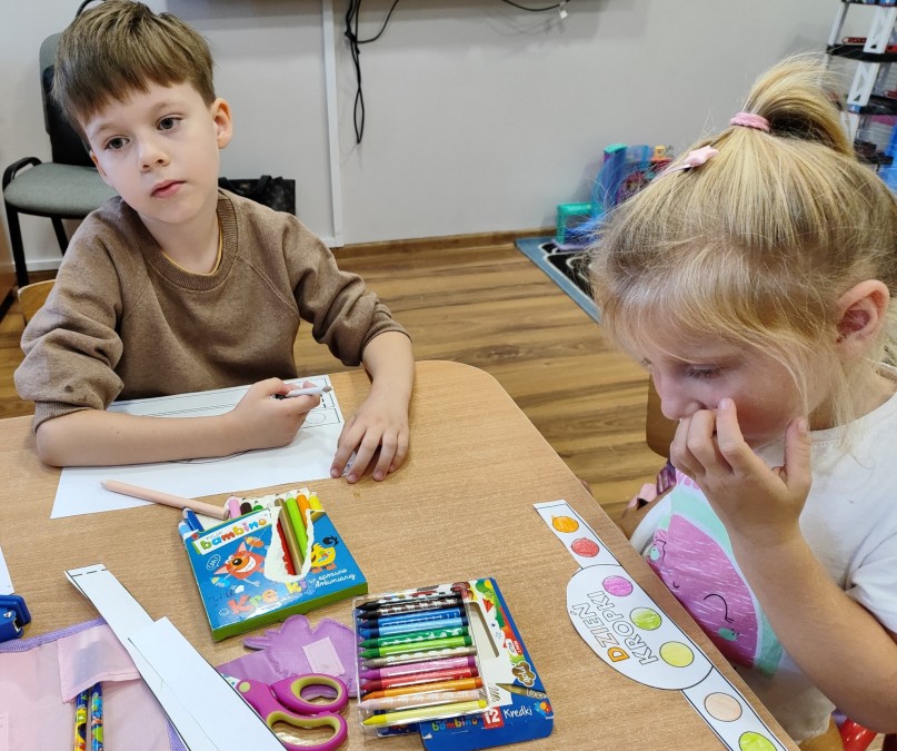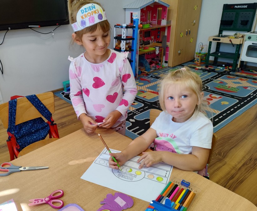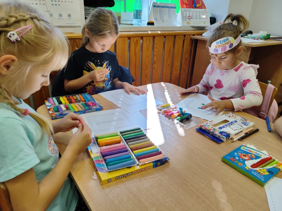 15 września dzieci z oddziału przedszkolnego naszej szkoły obchodziły Międzynarodowy Dzień Kropki – święto kreatywności, odwagi i zabawy. Przedszkolaki obejrzały krótki film edukacyjny, który przybliżył im ideę tego dnia, a następnie z zapałem wykonywały prace plastyczno-techniczne, dzięki którym mogły rozwijać swoją wyobraźnię i pomysłowość. Przy okazji utrwaliły również kształt cyfry 1, co stało się elementem zabawy połączonej z nauką. Dzieci przygotowały także kolorowe opaski na głowy, a całość obchodów dopełniły radosne zabawy ruchowe. Był to wyjątkowy dzień pełen uśmiechu, nowych doświadczeń i twórczej energii.