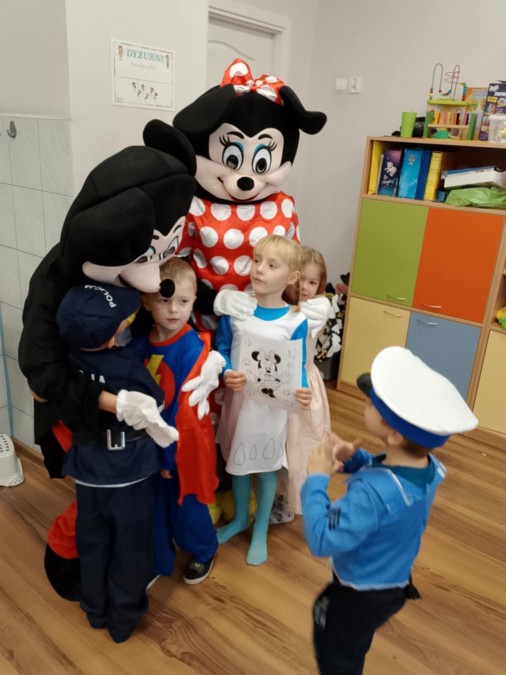 Tego dnia nasze przedszkolaki przyszły przebrane za swoich ulubionych bohaterów bajkowych. Dzieci uczestniczyły w quizach o znanych bajkach, tańczyły przy wesołej muzyce, a także oglądały bajki. Niespodzianką dnia była wizyta Myszki Miki, która wprowadziła wszystkich w bajkowy nastrój oraz sprawiła wszystkim ogromną radość.