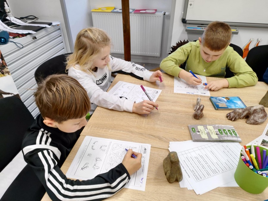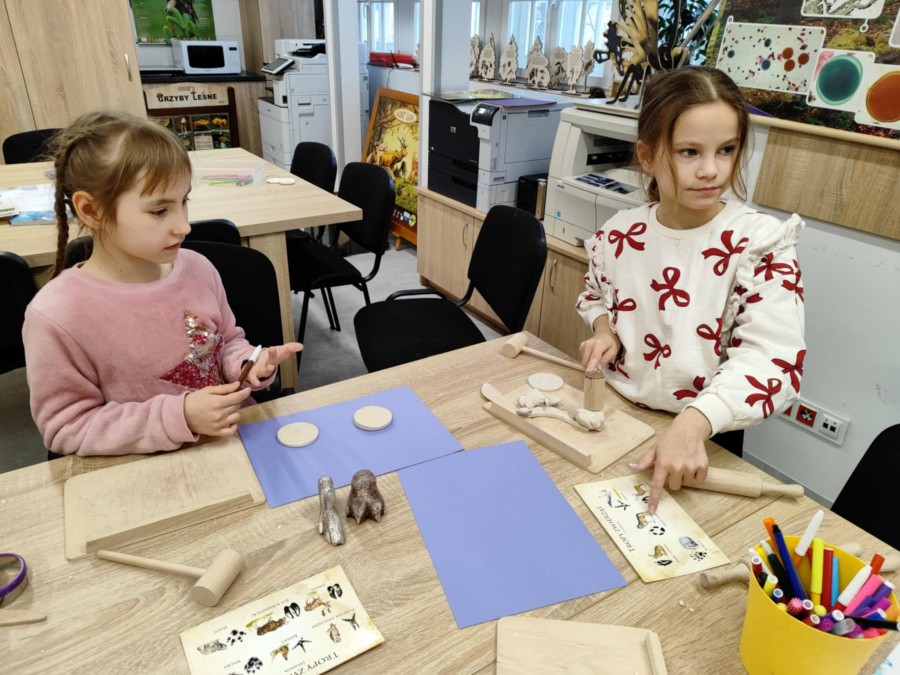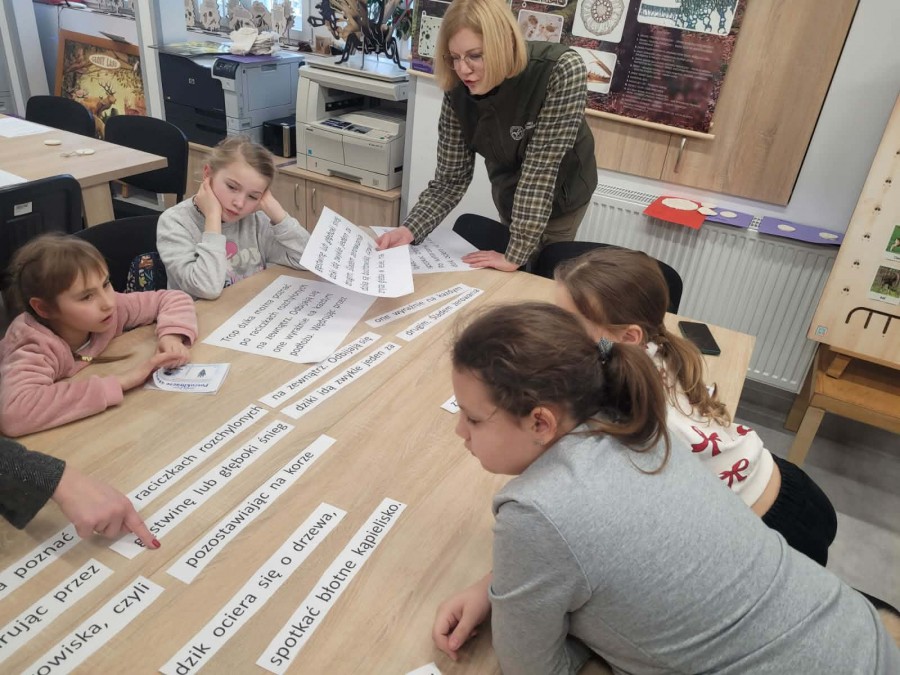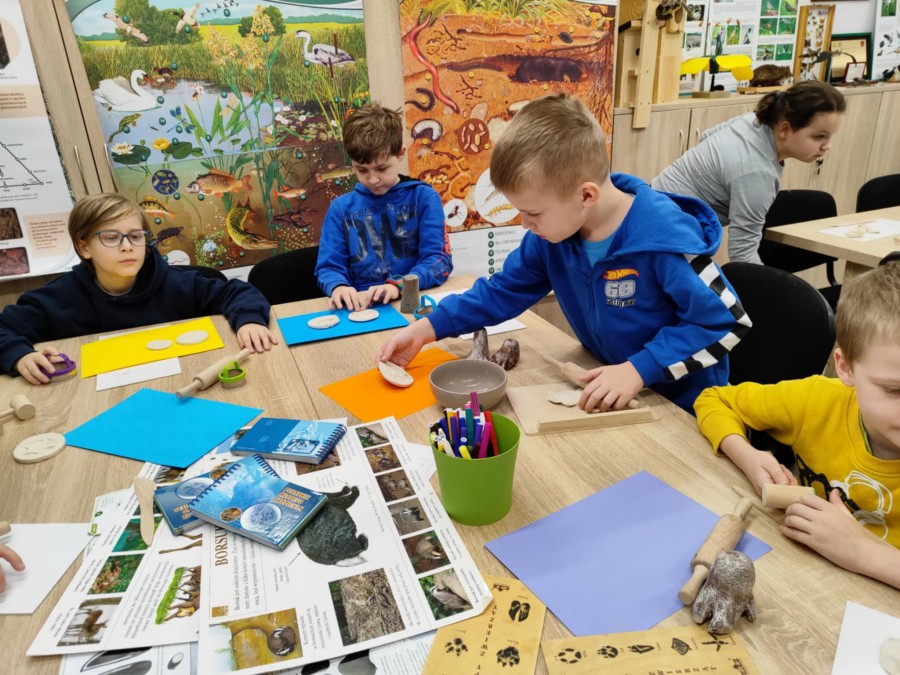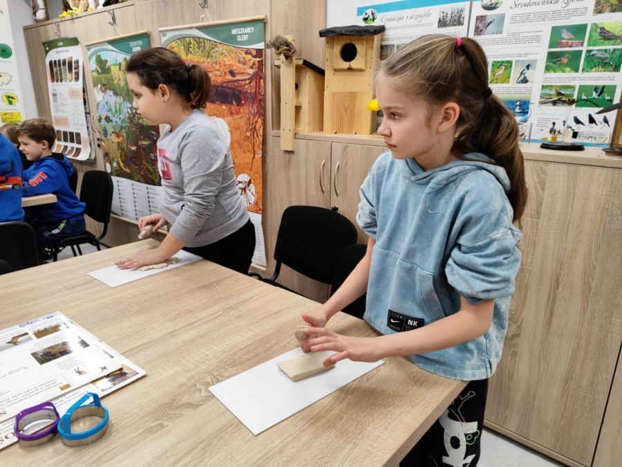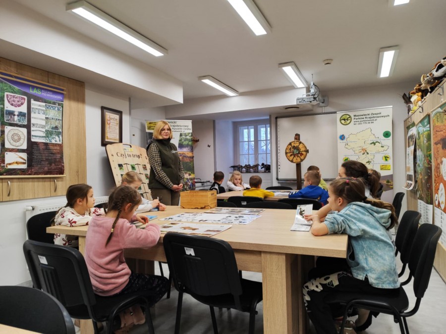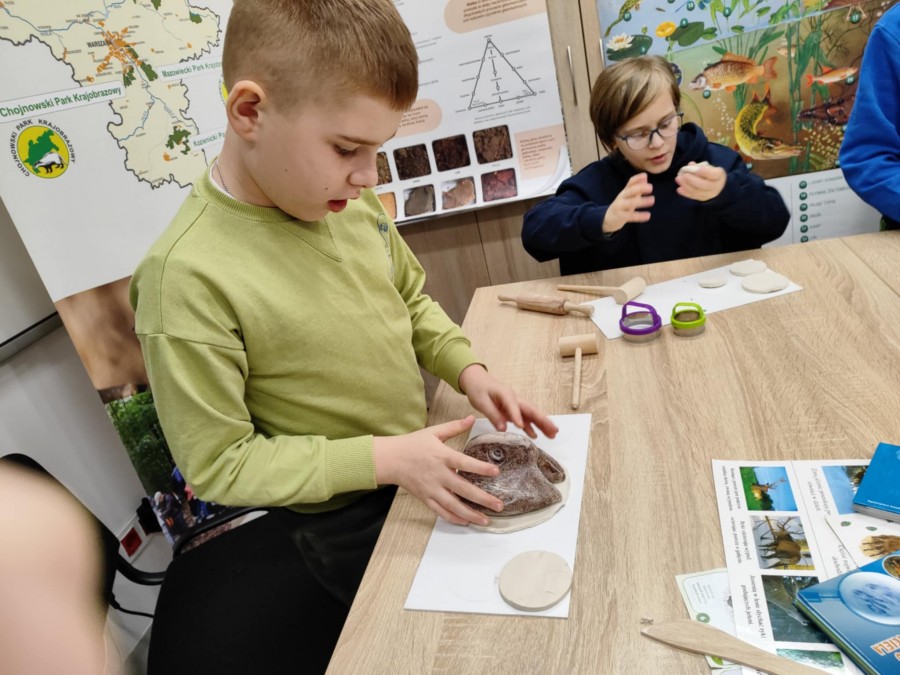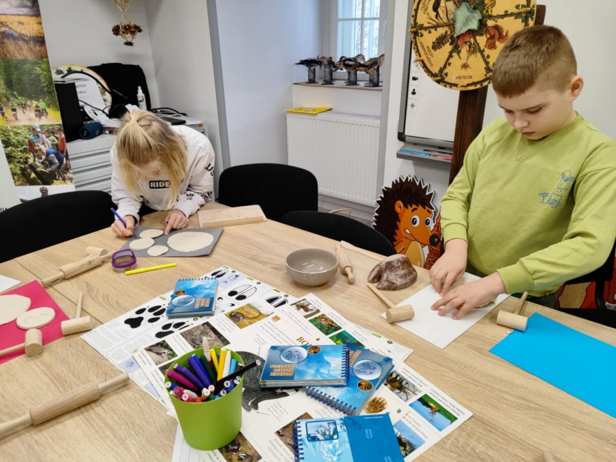 Dzisiaj uczniowie klas I-IV uczestniczyli w zajęciach przyrodniczych w siedzibie Kozienickiego Parku Krajobrazowego w Pionkach. Warsztaty odbyły się pod hasłem „Na tropie leśnych zwierząt” i dostarczyły dzieciom wielu ciekawych doświadczeń oraz praktycznych aktywności. Podczas zajęć uczniowie przypomnieli sobie, czym są tropy zwierząt oraz uczyli się rozpoznawać ślady leśnych mieszkańców. Każdy miał okazję odbić tropy w glinie i zabrać swoją pracę do domu jako pamiątkę. Dzieci poznały także inne ślady obecności zwierząt w lesie, m.in. poroże jelenia czy drewno obgryzione przez bobra. Prowadząca wyjaśniła, że śladami mogą być również dziuple, ślady rycia (np. dzika), pióra oraz odchody. Uczniowie rozpoznawali zwierzęta po odgłosach, a także pracowali w grupach, układając rozsypanki zdań dotyczące omawianych gatunków. Na zakończenie każdy otrzymał kartę obserwacji śladów zwierząt do samodzielnych badań terenowych oraz piękny piórnik. To była bardzo ciekawa i angażująca lekcja przyrody.