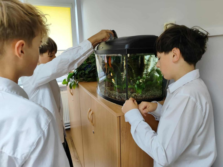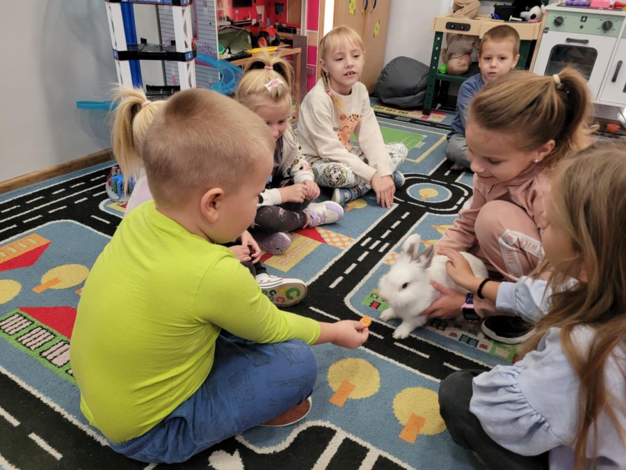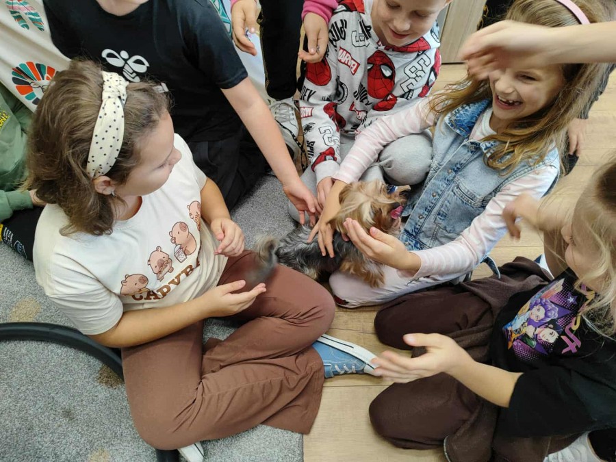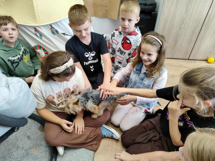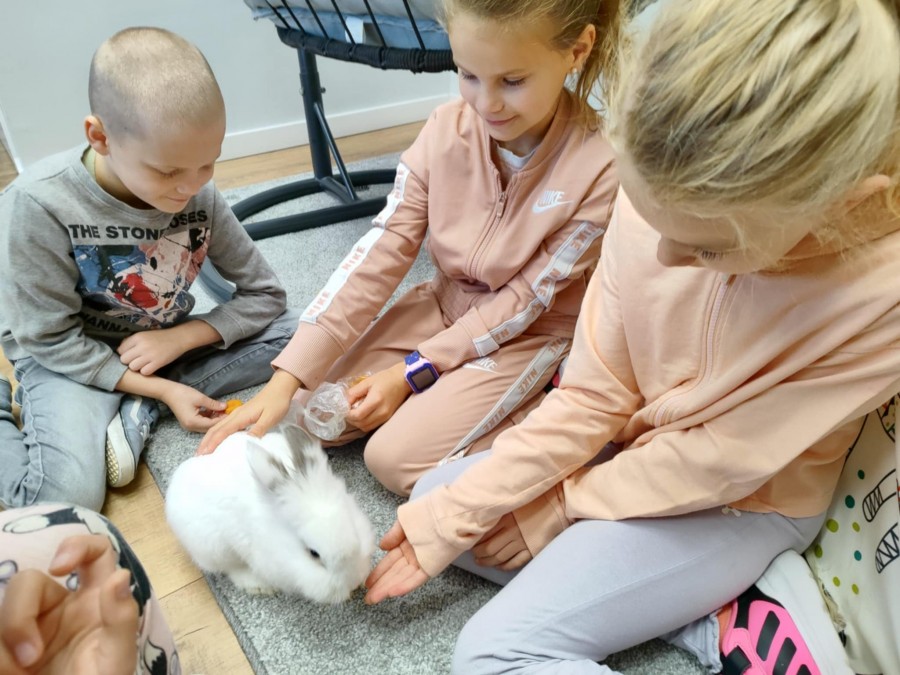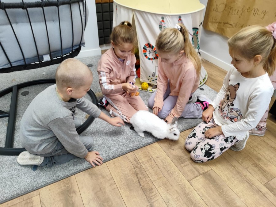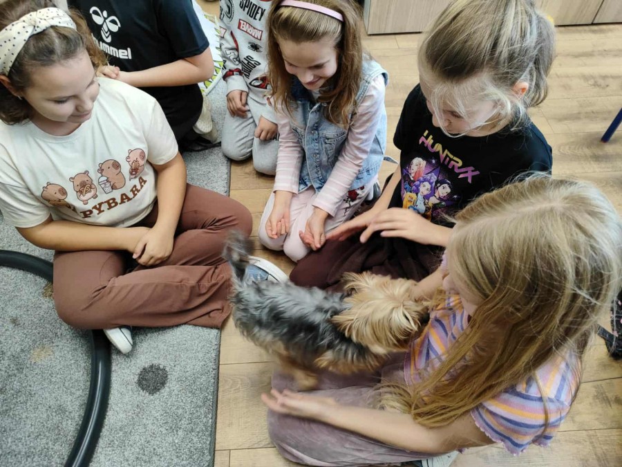 Październik to miesiąc propagowania idei troski o zwierzęta – szczególnie te, które są bliskie wyginięcia lub narażone na niesprawiedliwe i okrutne traktowanie. W tym czasie obchodzimy między innymi Światowy Dzień Zwierząt i Dzień Kundelka. W naszej szkole jak co roku odbyły się pogadanki na temat właściwego traktowania zwierząt oraz zajęcia, w czasie których uczniowie mieli okazję obcowania z pieskiem Toto rasy yorkshire terier oraz królikiem miniaturowym – Lucjanem. Opiekunki zwierząt, Zosia i Patrycja opowiadały o ich zachowaniu oraz o tym, w jaki sposób się nimi zajmują. Od wielu lat uczniowie opiekują się naszym szkolnym akwarium. Wyrabia to w nich poczucie odpowiedzialności, a obserwacja życia w wodzie wycisza ich i uspokaja. Poprzez bezpośredni kontakt ze zwierzętami dzieci uczą się empatii oraz właściwych postaw w stosunku do istot żywych. Kochajmy wszystkie zwierzęta nie tylko od święta.:))