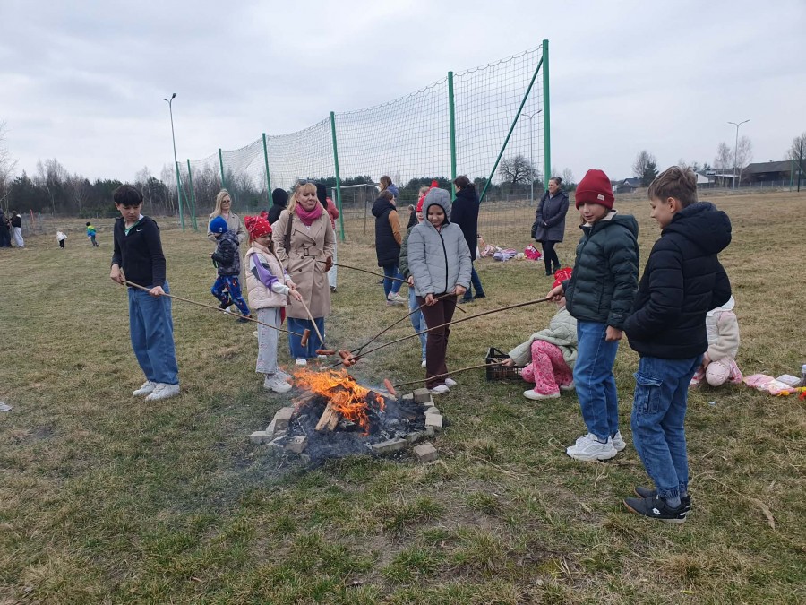 UWAGA! Uroczyście ogłaszamy, że przybyła do nas WIOSNA. Wprowadziliśmy ją kolorowym, wesołym korowodem. Wcześniej (bez żalu) pożegnaliśmy zimę, paląc marzannę, za przygotowanie której dziękujemy rodzinie Frania i Zosi. Wspólnie spędziliśmy czas przy ognisku i z uśmiechem na twarzy świętowaliśmy pierwszy dzień wiosny.