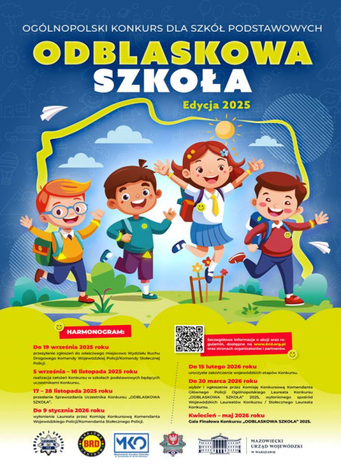 Nasz szkoła bierze udział w ogólnopolskim konkursie „Odblaskowa szkoła 2025”, który realizuje Komenda Wojewódzka Policji z siedzibą w Radomiu. Jego celem jest m.in. promowanie działań na rzecz poprawy bezpieczeństwa w ruchu drogowym oraz wyposażanie uczestników ruchu drogowego w elementy odblaskowe.
