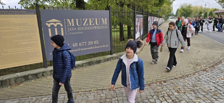 7 października 2025 r. dzieci ze Szkoły Podstawowej w Kozłowie uczestniczyły w edukacyjnej wycieczce szkolnej „Śladami Jana Kochanowskiego”. Był to bardzo ekscytujący i pouczający wyjazd. Młodzież uczestniczyła w lekcji muzealnej z przewodnikiem w Czarnolesie, zwiedzała park, w którym tworzył poeta. W trakcie wycieczki zobaczyliśmy również Zwoleń i miejsca związane z Kochanowskim: Kościół Podwyższenia Krzyża Świętego, kryptę, w której pochowano artystę, pomniki Jana Kochanowskiego i jego córeczki Urszulki. Zwiedzaniu towarzyszyły pouczające opowieści nauczycieli, które przybliżyły dzieciom życie i twórczość poety. Na koniec uczniowie spędzili przemiły czas w kawiarence Oficyna. Przy pysznym cieście dzielili się wrażeniami i cieszyli chwilą. W drodze powrotnej była możliwość uczestnictwa w quizach, w których można było się wykazać zdobyta wiedzą.