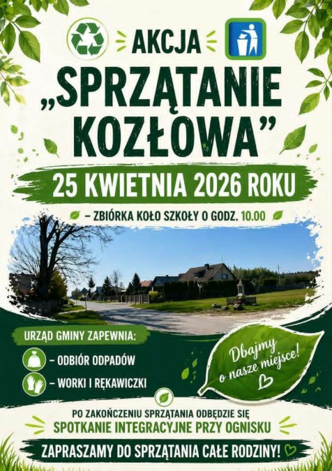 Uczniowie, nauczyciele oraz mieszkańcy Sołectwo Kozłów aktywnie włączyli się w akcję sprzątania. Wspólnie zadbaliśmy o czystość naszej Małej Ojczyzny i teraz nasze oczy cieszy widok zielonej trawy i pięknych kwiatów. Na zakończenie odbyło się ognisko i pieczenie kiełbasek. Wspólnie spędzony czas integrował społeczność i kształtował dobre nawyki u młodych ludzi.