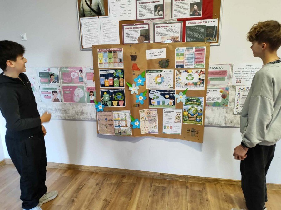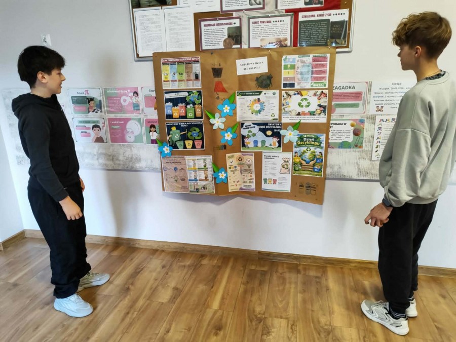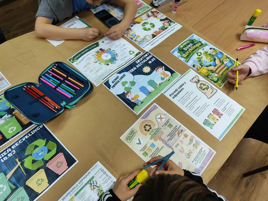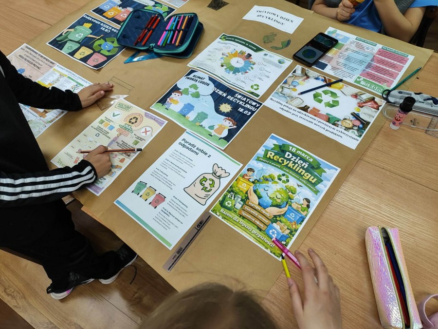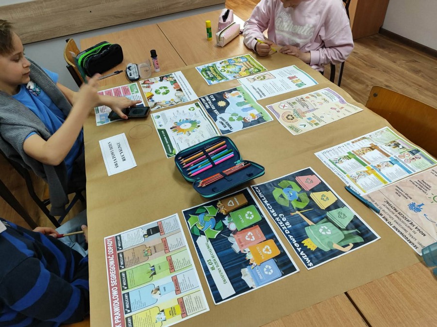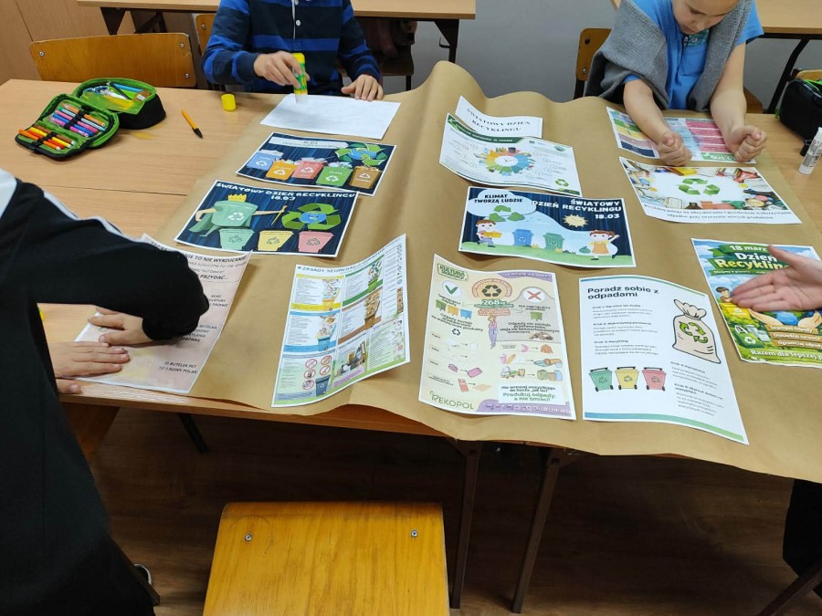 pogadance na temat recyklingu oraz wykonali pracę plastyczną promującą
