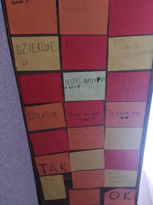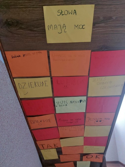 Nasz szkoła bierze udział w Ogólnopolskiej Kampanii Społecznej „Słowa mają moc”, w ramach której realizujemy Program dla szkół „Szkoła Dobrego Słowa”. Organizatorem i pomysłodawcą programu jest FundacjaPozytywni.pl. Jest to piękna akcja zwracająca uwagę na język, jakim się posługujemy na co dzień w naszych kontaktach. Ta wyjątkowa inicjatywa edukacyjna promuje kulturę języka, empatię i komunikację opartą na wartościach. Dotychczas nasza młodzież stworzyła Kodeks Dobrego Słowa, przygotowała zestaw słów, które chcieliby usłyszeć w tym roku szkolnym o sobie oraz uczestniczyła w grze terenowej. Ciepłe i miłe słowa rozjaśniły nasz korytarz szkolny, a także schody, dodając skrzydeł wszystkim, którzy po nich wchodzą. W ramach programu, który będzie trwał do końca roku szkolnego, zrealizujemy wiele zadań, by dobre słowa na zawsze zagościły w naszych rozmowach i budowały pozytywną atmosferę.