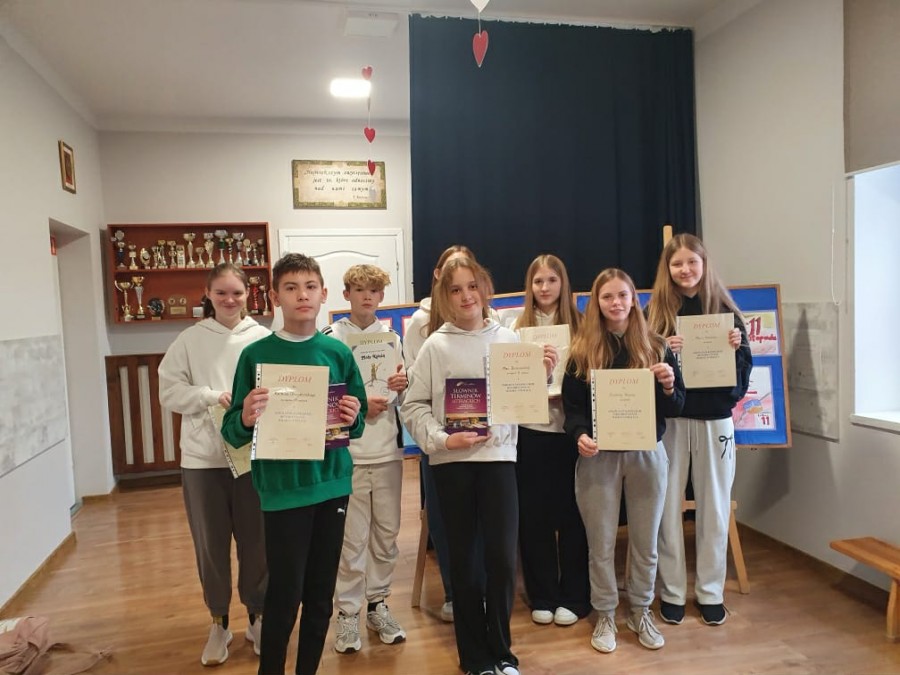 W naszej szkole odbył się Szkolny Konkurs Wiedzy o Polsce. Jego celem było uczczenie 107. rocznicy odzyskania niepodległości przez Polskę, poszerzenie wiedzy uczniów o ważnych wydarzeniach i postaciach z historii naszej Ojczyzny, kształtowanie uczuć i postaw patriotycznych.