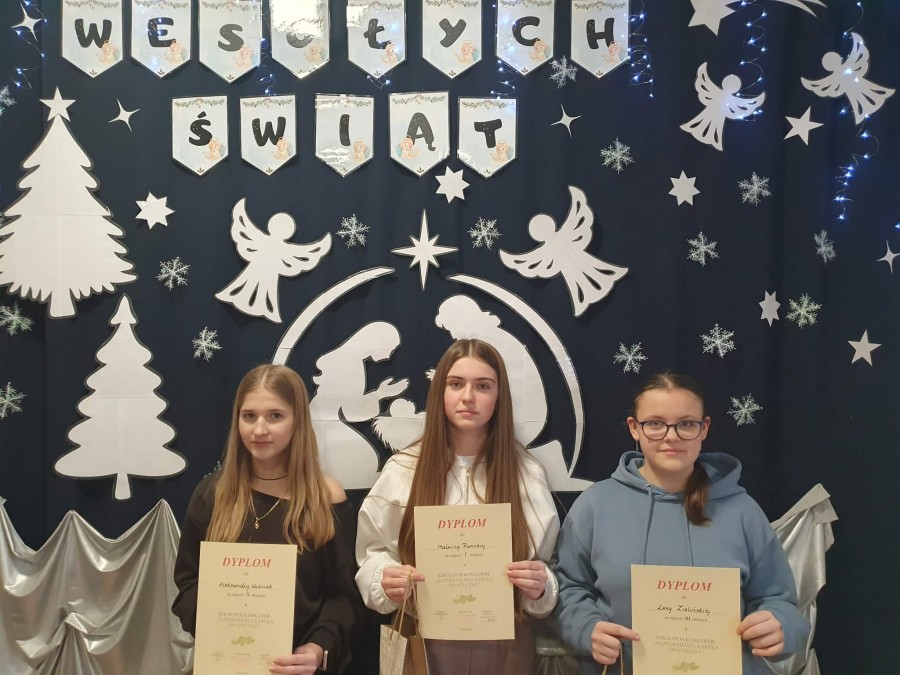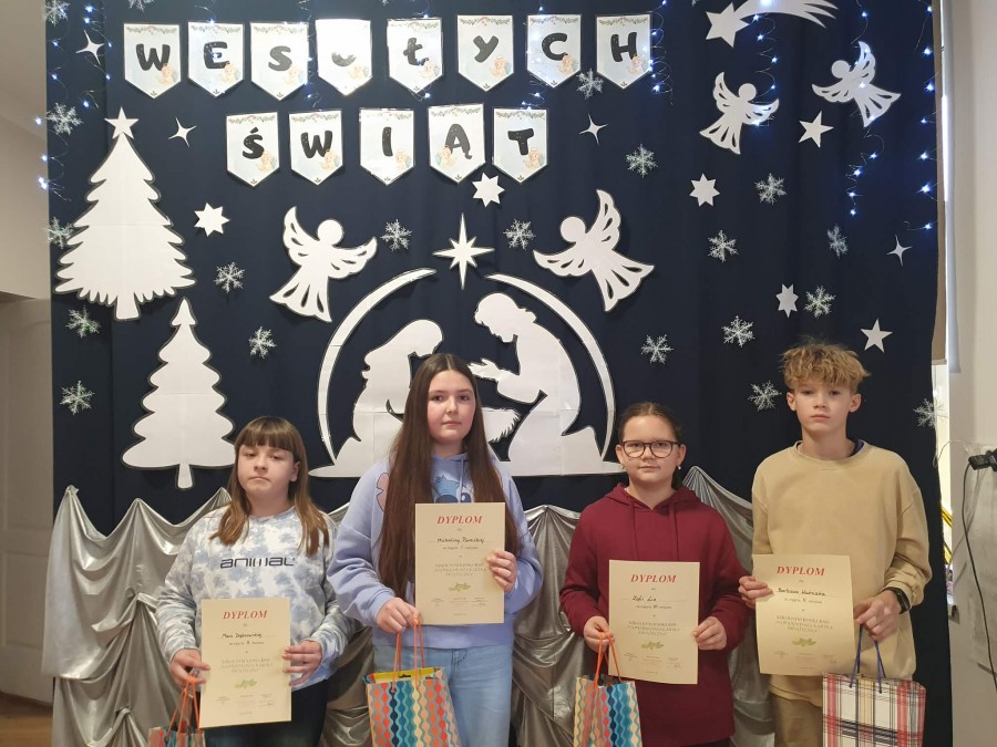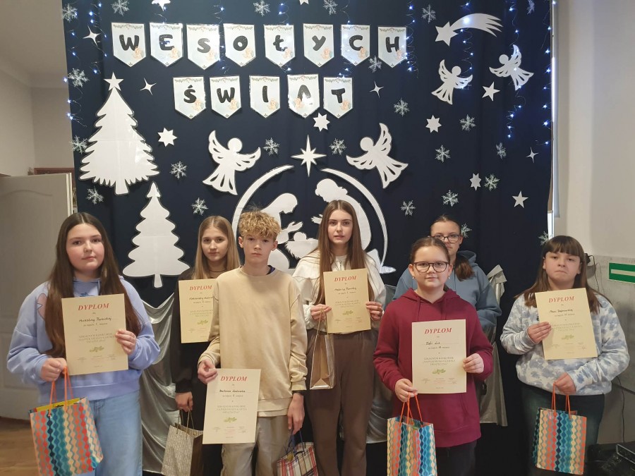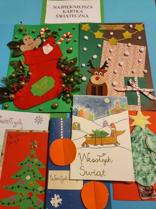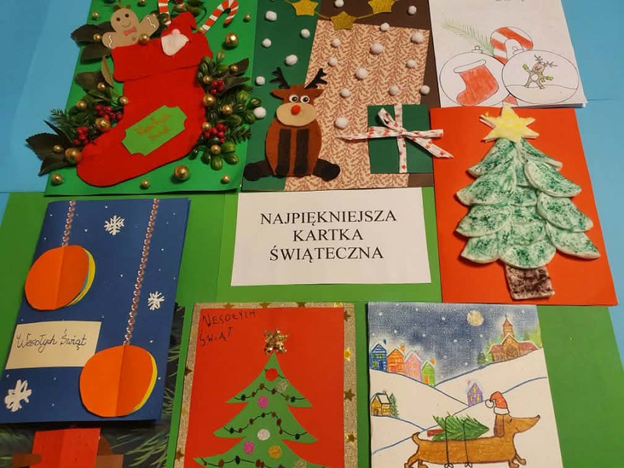Zbliża się Boże Narodzenie. To czas, który spędzamy w gronie rodzinnym. Składamy sobie życzenia i wysyłamy kartki świąteczne, by sprawiły radość tym, którzy je otrzymają. Aby podtrzymać tę tradycję, uczniowie z klas IV-VIII wzięli udział w konkursie na najpiękniejszą kartkę świąteczną. Przesyłamy je do Was wszystkich, życząc zdrowych, spokojnych Świąt Bożego Narodzenia i szczęśliwego Nowego Roku.