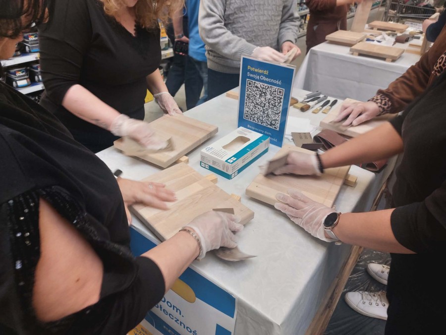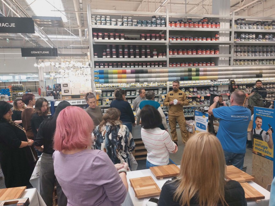 W sobotnie przedpołudnie w Castoramie w Radomiu odbyły się warsztaty „Bezpieczny Dom. Bezpieczna Społeczność”, w których wzięli udział rodzice i nauczyciele z naszej szkoły. Podczas spotkania pan strażak podkreślił, że bezpieczeństwo w domu zależy od naszych działań i zachęcił do instalowania czujek dymu, czadu i gazu. Uczestnicy wykonali olejowane deski do krojenia, które mogą przydać się w każdej kuchni.