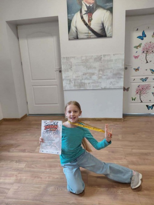 Wielki sukces naszej uczennicy! Tosia ponownie stanęła na podium turnieju tanecznego o zasięgu ogólnopolskim. W Dance Design CUP 2026 zajęła 1 miejsce. Gratulujemy Tosi serdecznie i dmuchamy w jej skrzydła, by z sukcesami rozwijała swoją wspaniałą pasji.