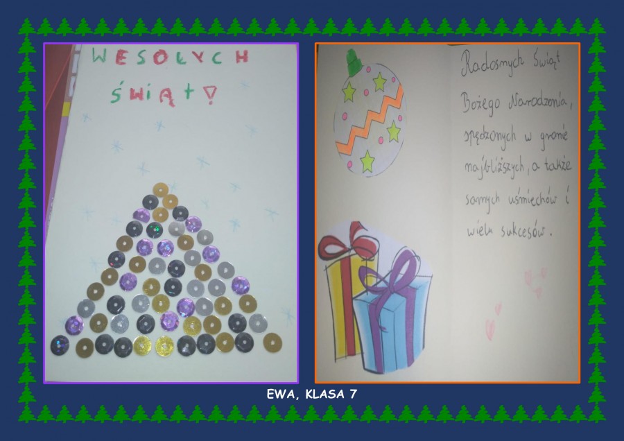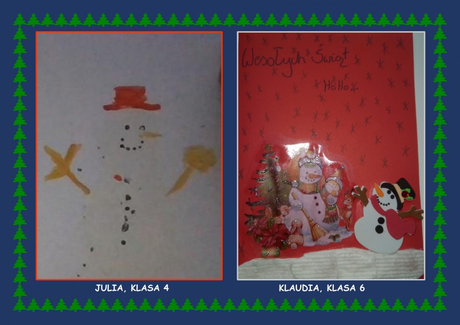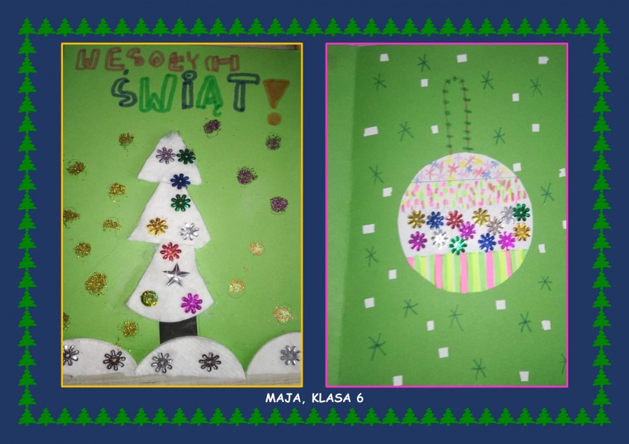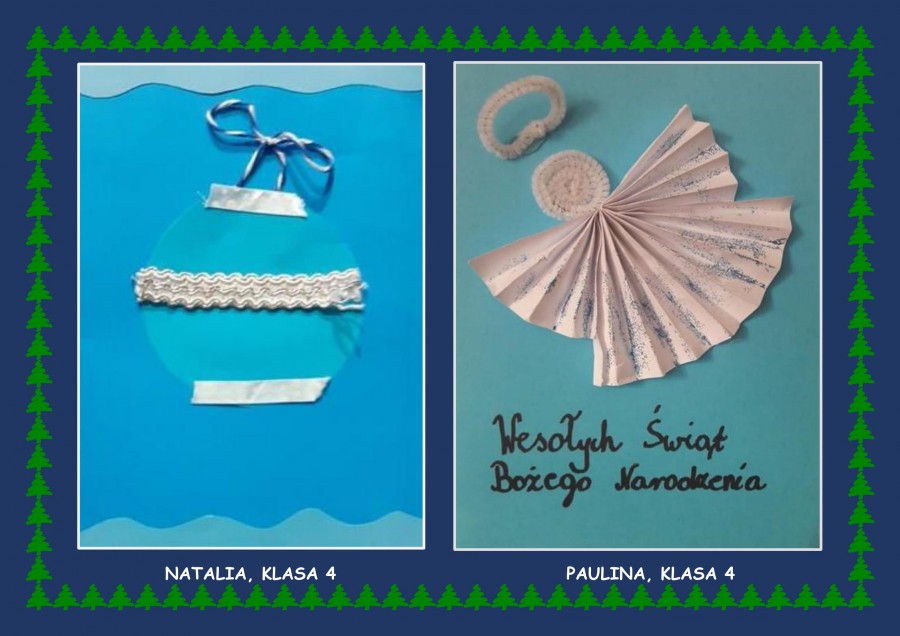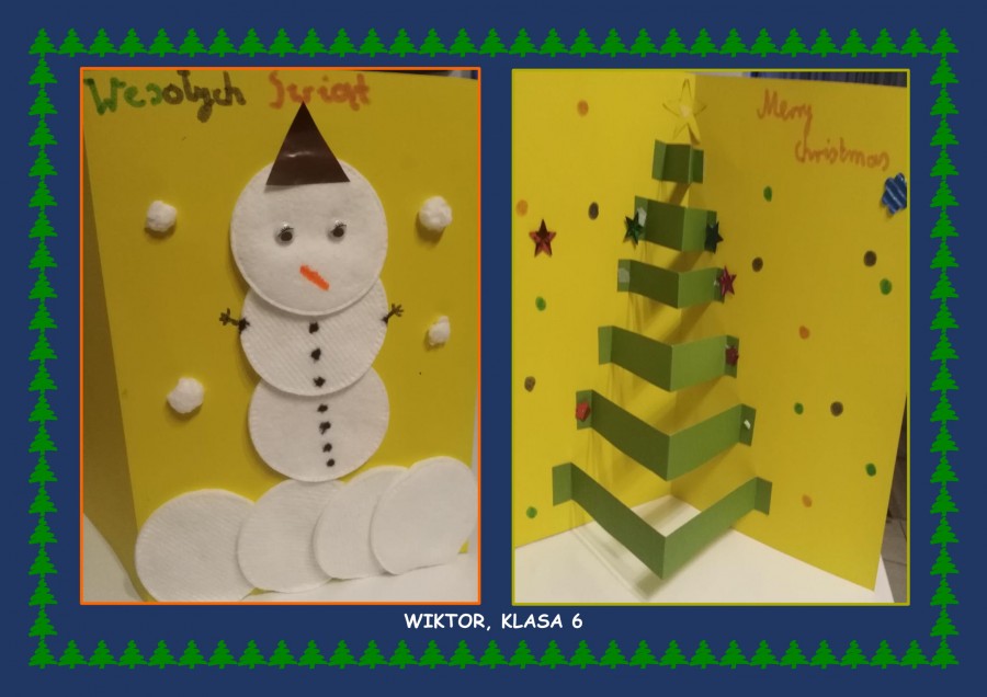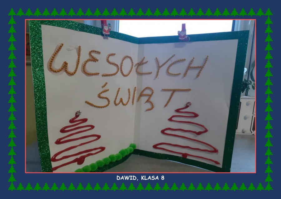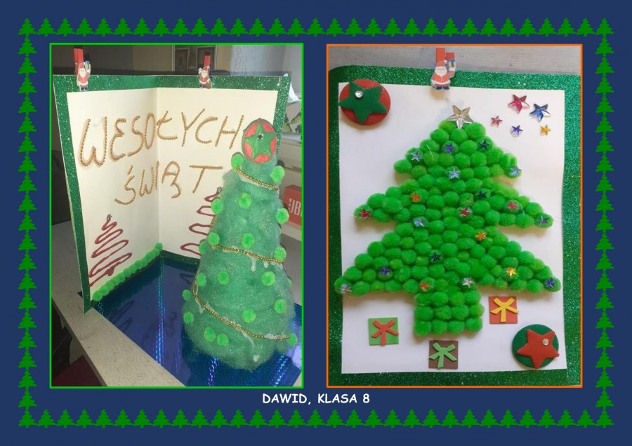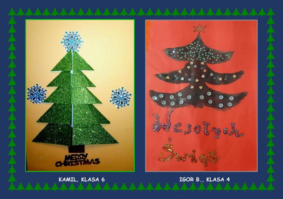 Zbliżają się Święta Bożego Narodzenia. To niezwykły czas, który spędzamy w gronie rodzinnym. Składamy sobie życzenia i wysyłamy kartki świąteczne, by sprawiły radość tym, którzy je otrzymają. Aby podtrzymać tę piękną tradycję, uczniowie z klas IV-VIII wzięli udział w konkursie na najpiękniejszą kartkę świąteczną. Przesyłamy je do Was wszystkich, życząc zdrowych, spokojnych Świąt Bożego Narodzenia i szczęśliwego Nowego Roku.
